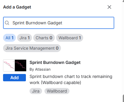 Add the Gadget: Search for Sprint Burndown Gadget.